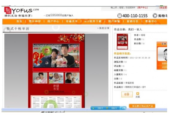 很高興能得到有福網(wǎng)個性年歷免費體驗?。?!激動得很!很快上了有福網(wǎng),下載了DIY軟件,一眼就喜歡上“傳統(tǒng)”的新年年歷格式,大紅大紅,還可以放多幾張相片,趕緊拍了全家福,放上去,然后上傳……操作完畢!沒幾天,快遞就寄過來了。