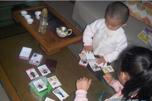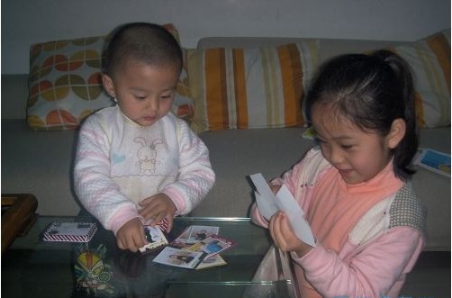攤開在桌子上剛拍兩下,弟弟就過來搗亂了,后來又補拍了幾張,姐姐說:我們來玩牌。結(jié)果弟弟一響應(yīng),兩人就玩開了,我拍好后趕緊收好,被他們那么一鬧,