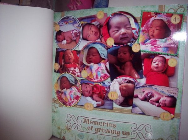 回到辦公室,忍不住向很多同事炫耀一番,都覺得很漂亮有新意還是很珍貴的紀(jì)念。拿回家,全家人都很意外,一頁頁翻看,說說笑笑地又一起重溫了養(yǎng)育小寶寶的經(jīng)歷以及小寶寶成長的有趣片段。