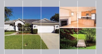 在圖片區(qū)域里加多幾張照片(上圖是由三張圖片組成),但圖片所占據(jù)的位置仍然要遵守原來的五列布局。而且象上圖一樣,大圖占三列,小圖占兩列,避免頁面顯得過于呆板。如果你有需要,甚至放進(jìn)四張圖片也可以(見下圖)。在這種設(shè)計(jì)中,使其中一張照片比其它的照片都要大可以獲得最好的視覺效果。