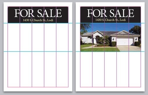 接著加上文字。我們將各種相關(guān)的文字(各種信息及要點(diǎn))放在三個(gè)列的范圍中,并要注意文字間的對比,在上圖中是由較大的細(xì)襯線( serif )字體及一種較小的非襯線( san-serif )粗體組成形成了對比。這樣可以使觀看的人知道這是兩部分不同的文字信息。與標(biāo)題一樣,這里的文字區(qū)域同樣是由那些列來決定的。最后就是加上聯(lián)系信息。地圖放在右邊,占了兩列,而右下角放上了小圖片。