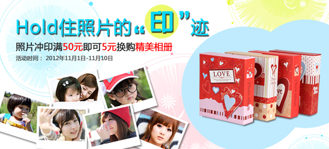 照片沖印滿50元(不含過塑)即可5元換購精美桃心立體相冊!
