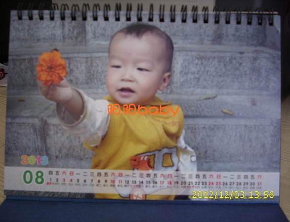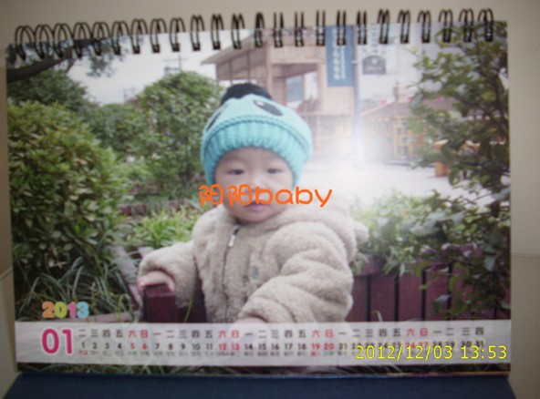 剛剛收到,拍完片片后就上來分享了。嘿嘿,很漂亮,好喜歡。 猜想等會兒兒子午睡醒看到后會是什么反應(yīng)呢?,呵呵。 我選是的空白模版,挑選了24張寶寶照。 可惜的是,在制作時我忘了把重要的日子做上特殊的標(biāo)記了。 按月份來,一月很冷,我就選了張寶寶穿的很厚實的照片。6、7月份很熱,放了張洗澡澡的裸照。在新年、和他生日的月份送上了我這當(dāng)媽的祝福,希望兒子能喜歡喔~