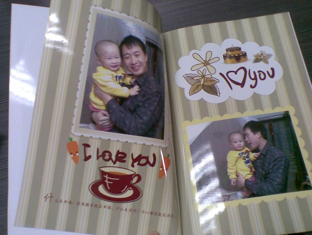 今天一大早來上班就收到了有福網(wǎng)寄來的DIY雜志,生產(chǎn)速度與郵遞速度都是驚人的有效率,從下單到生產(chǎn)到收快遞緊緊三天時間就完成了.迫不及待地打開看,質(zhì)量比想像中的好多了,輕便簡單,圖像清晰,個人認(rèn)為比相冊要好.而識字卡是前兩天收到的,也是特別的精致可愛.
