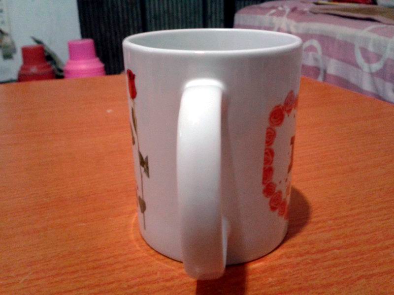 杯子的側(cè)面,把手左邊有一朵玫瑰花,老公竟然沒(méi)有給我來(lái)個(gè)特寫(xiě)鏡頭