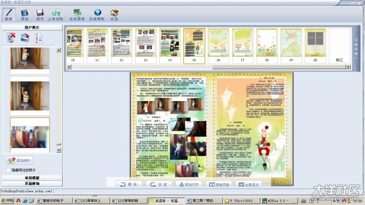 在得知?jiǎng)俪龊?,媽媽很高興,雖然在意料之中但結(jié)果一日未出一日都未放下心。收到網(wǎng)管菲菲的信息后,媽媽在9月1日才開(kāi)始有時(shí)間上有福網(wǎng)看具體的情況如何。有福網(wǎng)里有很多選擇,“個(gè)性雜志”才是我們的選擇。下載了有福軟件后,媽媽用了兩天時(shí)間來(lái)鉆研有福“個(gè)性雜志”的使用。