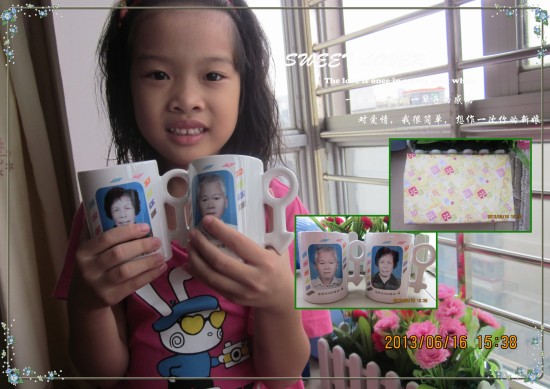 思思聽說我要送杯子給外公外婆,還鬧著非要自己親自動手把杯子用彩紙包好,說要親自送給外公外婆。我笑著說父親節(jié)你應(yīng)該送禮物給你爸爸,我送我爸爸,你干嘛要和我搶呀。