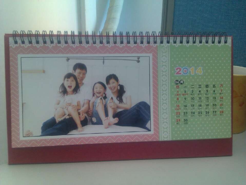收到臺(tái)歷后讓小伙伴們都驚呆了,封面采用了磨砂封皮。而且封底還贈(zèng)送了不干膠貼紙 ,可以讓寶貝們自由裝飾臺(tái)歷了。而且臺(tái)歷的質(zhì)量是沒(méi)得說(shuō)了,印刷的色彩很真實(shí),很是喜歡啊,我們?nèi)叶枷矚g。在這兒謝謝支持我的親們,謝謝媽媽說(shuō),謝謝有福網(wǎng)給了我們這樣一份2014年的驚喜。