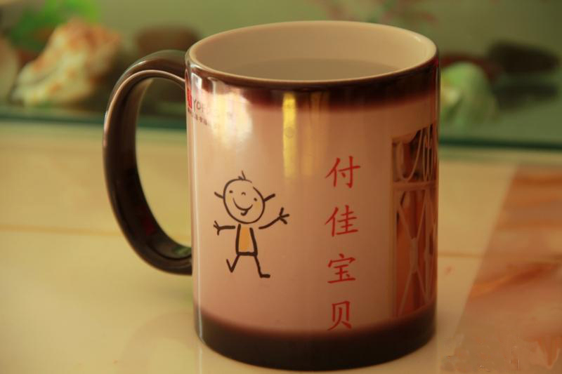 前天心血來潮,跑去網(wǎng)購.心想也給女兒來一份圣誕禮物。就選擇在有福網(wǎng)制作的變色杯,杯子是黑色,一倒上熱水,杯子上的照片就顯示出來了,等水冷卻后,又恢復(fù)了黑色,很漂亮,很神奇!