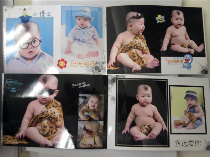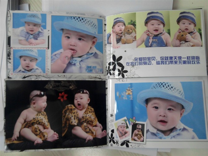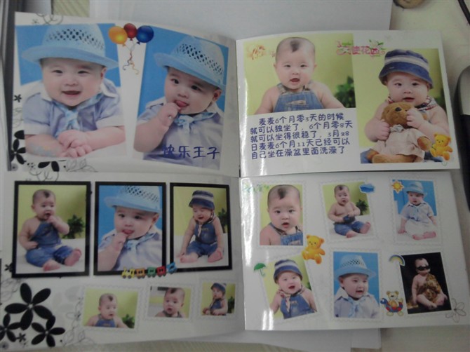 曬曬在有福網(wǎng)做的照片書,大小是6寸照片那么大,還可以設計,一共16頁只要10塊錢,可以設計的好漂亮,還可以放好多張照片,壓了膜,也不怕褪色,那種光膜海鮮的照片很亮,顏色也好看,平時裝在包里,給別人看的時候好方便,第一次給寶寶的百日照做了兩本,結果給寶寶的幾個太姥姥看,都想要,可是那么漂亮的我都舍不得給,這一次我一起做了4本,給太姥姥們一人發(fā)一本,可把他們高興壞了!沒事就拿到樓下給別的老太太們顯擺自己的重孫子呢!想做的話就百度“有福網(wǎng)”就可以了,現(xiàn)在郵費才3元,洗照片也很便宜,6寸照片只要4毛5,質量也不錯,可比我家門口的照相館強多了!