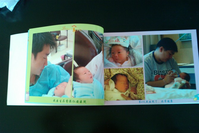 自己做相冊(cè)還是有點(diǎn)好處的,可以自己隨心所欲的發(fā)揮。這本相冊(cè),我把有有寶貝從出生到4個(gè)多月的照片按照時(shí)間的順利編排,第一張就是剛出生的,然后是3天、4天、10天、23天。。。而且相片底下都依次的有時(shí)間注明以及媽媽用寶寶的口吻寫的字語。這樣寶寶以后長大在欣賞自己照片的同時(shí),也可以不費(fèi)功夫的就知道這是多大時(shí)候的照片。媽媽待寶寶長大后,也可以看著相冊(cè)回憶寶寶以前小小的模樣,還是很不錯(cuò)的。