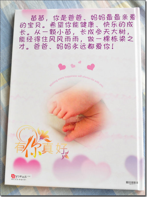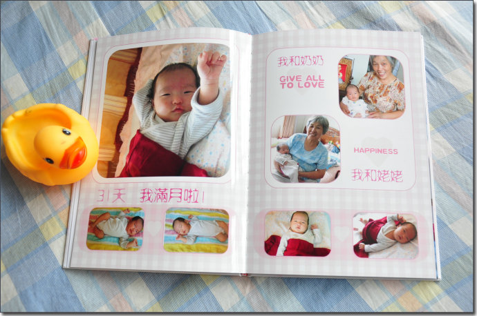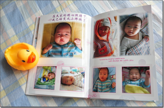 買了單反相機后,就不想在影樓做相冊了,領(lǐng)著孩子去照相也很費時間,孩子還經(jīng)常不配合,而且好的影樓價格太貴。還不如用自己給孩子照的生活照做相冊,更自然些。于是就在網(wǎng)上漫無目的的搜尋制作相冊的網(wǎng)站,無意中進了有福網(wǎng)。正巧網(wǎng)站搞活動,新注冊用戶制作12*8的照片書打6折,才47元。不錯,適合我的心里價位。于是趕緊下載他家的軟件制作了一份苗苗1-3個月的冊子。