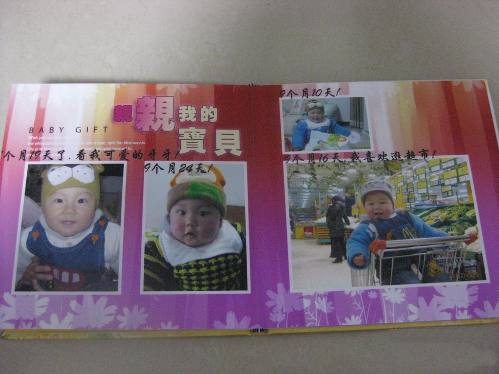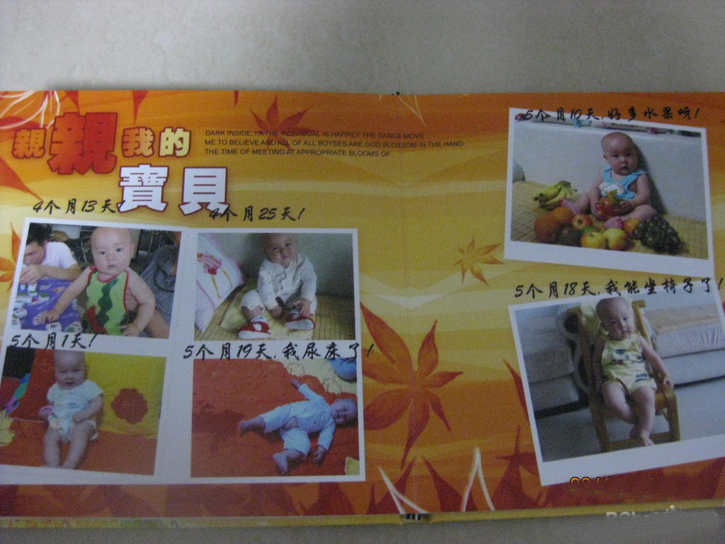 做這個(gè)相冊對我來說不是很難,因?yàn)橹拔乙呀?jīng)在有福網(wǎng)上學(xué)習(xí)了好幾遍了,呵呵。好幾個(gè)版本的相冊,我選了一個(gè)色彩比較艷的,后來看到好多親都選的這個(gè)。我做這個(gè)相冊的主題是超超的成長,從超超開始出生時(shí)我就給他留下了相片,我就打算做他的成長相冊,每個(gè)月都有他的照片,而且我還細(xì)心地注明他的月齡。經(jīng)過了下軟件,選相片,開始DIY,查看效果一系列的工作,從晚上七點(diǎn)吃完晚飯開始做直到超超睡著,我又接著做,到十一點(diǎn)多我才全部完成,第二天就提交了訂單,付款。接下來就是等待了。有福網(wǎng)的速度還真是快,本來我擔(dān)心在2月13日沒收到相冊不能寫報(bào)告的,結(jié)果在今天早上我就收到了相冊。真是高興啊,我迫不及待地打開包裝,呈現(xiàn)在我眼前是一本令我驚奇的相冊,質(zhì)量好的沒話說,手感也相當(dāng)好,同事們看到都說不錯(cuò),問我多少錢,我讓她們猜,都說沒個(gè)一兩百做不出來,等我說出價(jià)格時(shí),她們都難以置信地看著我,大呼我真走運(yùn),呵呵。后來一個(gè)朋友還讓我給她的寶寶也做個(gè),我說可能沒這個(gè)優(yōu)惠的活動(dòng)了,她說沒有優(yōu)惠的活動(dòng)也比影樓里便宜啊。