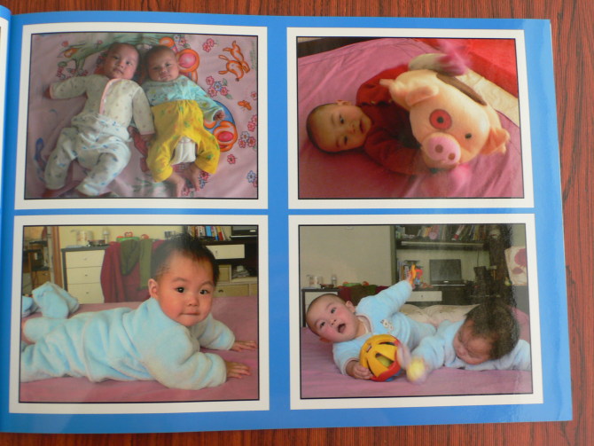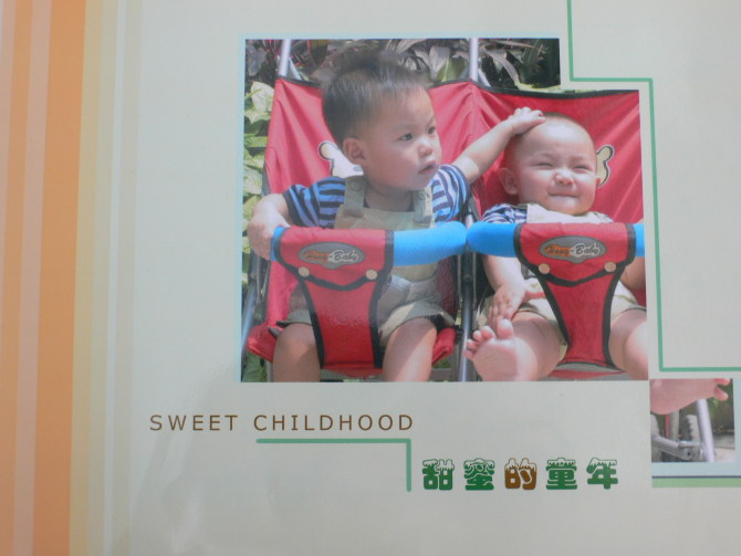 我精心挑選了80多張的照片,把兩個(gè)小寶寶從剛出生到一歲牙牙學(xué)語、姍姍學(xué)步的可愛樣子都包羅進(jìn)去。用“有福藝術(shù)家”軟件編輯著照片,回憶像放電影似的在眼前飄過:剛出生的兩個(gè)小寶寶,堪比兩只小貓貓;由于過敏體質(zhì),有時(shí)候一吃就吐,但在大家的努力下,兩個(gè)小寶寶長得有模有樣了;抬頭、翻身、坐起、爬行、學(xué)走路……一笑一顰,牽動(dòng)家里每個(gè)人的心。封面的那張照片,最能反映兩個(gè)小寶寶成長得不易了:天才開始暖和,細(xì)細(xì)還是頭發(fā)旺盛,而大大則是個(gè)大光頭了,為什么?大大因?yàn)槟谭圻^敏,住院了,頭皮針已無處可扎,只能剃頭了……孩子痛,大人的心更痛。這之后,我們努力尋找適合他的奶粉,現(xiàn)在寶寶才健康了。有福網(wǎng)的編輯功能真好,連圖片的插畫也能剛好反映照片的主題,我愉快地把這些照片編輯好,上傳——訂購——等待——三天接到送貨的電話……嘩,真漂亮。全家人看著這本相冊,滿意極了,照片不但曬得很清晰,而且還免除了一張張照片放入相冊的麻煩,很好保存,而且價(jià)錢也不貴,一本相冊有80張照片,連運(yùn)費(fèi)才不過51.94元。“真棒!”姨婆拿著相冊,笑不攏口了!