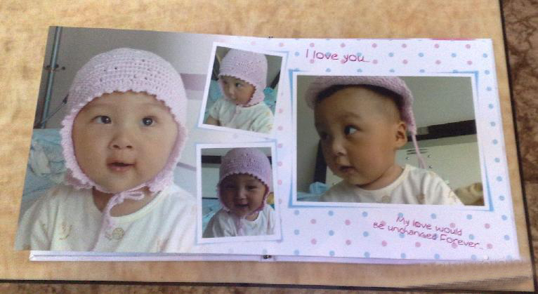 這個女兒5個月的時候,我用毛巾給她做的帽子,還蠻漂亮的。