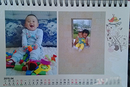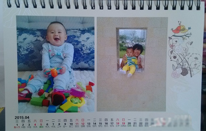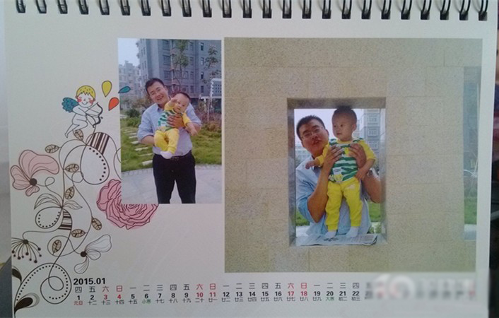 等待的時候心情是興奮的,收到的心情更不用說啦!臺歷紙張很好,顏色為大紅色,封面我放的是全家福,背景也是紅色的,很搭配呢。印刷的圖片很清晰。 可以直接站在桌面上,用起來很方便 。既能看日歷,又能看到照片,擺在擺臺上,既美觀又實用。自己親手制作,很有紀(jì)念意義,是值得珍藏的一份臺歷。