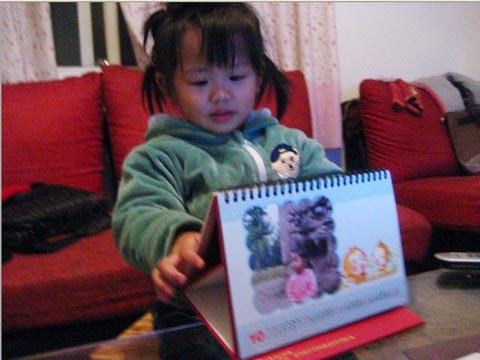 我覺得有福網的模板風格比較多,而且都挺好看的,所以就用了一個悠嘻猴的臺歷模板。做完之后左下角還有頁面修飾,加了一些小卡通畫,增加了一些情趣。另外還可以加一些文字在上面做記錄,或者只是單純的表達祝福。