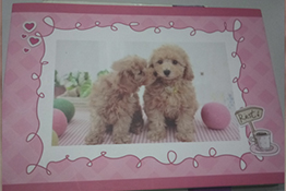 給家里的兩只小泰迪做了一本紀(jì)念冊,記錄著它們生活的點(diǎn)滴,非常有愛的小泰迪!這本冊子的質(zhì)量不錯(cuò),裝訂也挺精美的,內(nèi)頁的紙張也不是普通的紙,介紹說的好像是德國的古樓紙,雖然不是特別了解,色彩非常的飽滿!