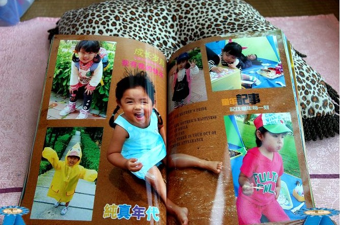 辛苦做出來的照片書,給大家看一看,新鮮出爐嘍。。。。。我家的小爆米花表情多多,平時我也很愛幫她造型呢!