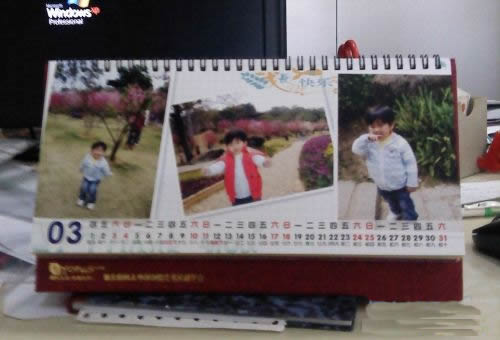 過來秀秀,手機(jī)拍的照片有點(diǎn)模糊 ,實(shí)物比這個清晰很多了!有福網(wǎng)個性臺歷太給力了!